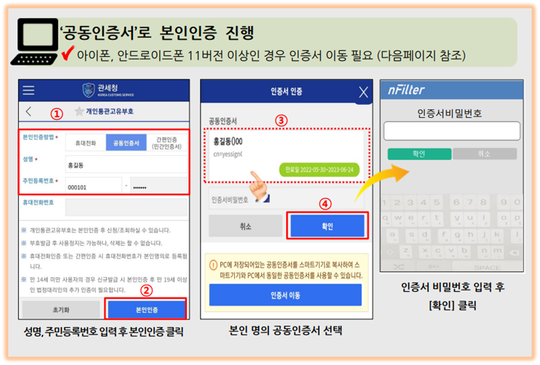휴대폰 어플을 이용한 개인통관 고유부호 발급 및 조회 (모바일 관세청 앱)