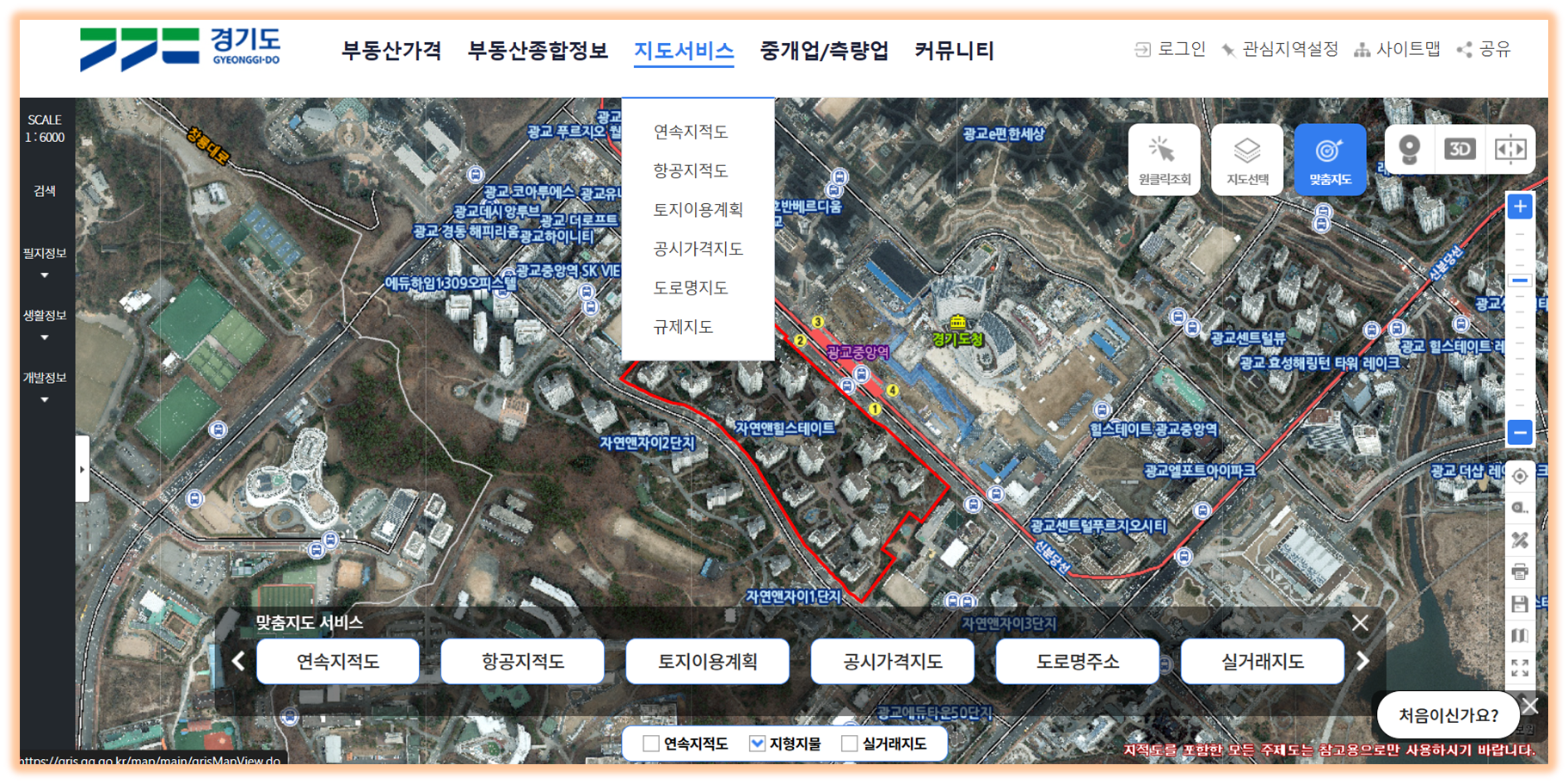 경기도 부동산 포털에서는 부동산 중개와 관련된 정보, 측량 업체에 해 정보를 제공하고 있습니다.
