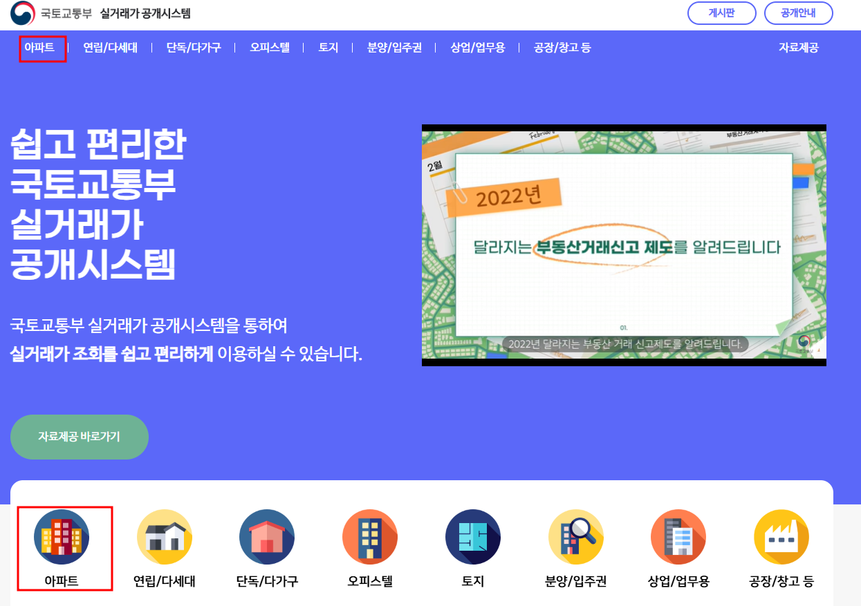 국토해양부 아파트 실거래가 조회 방법