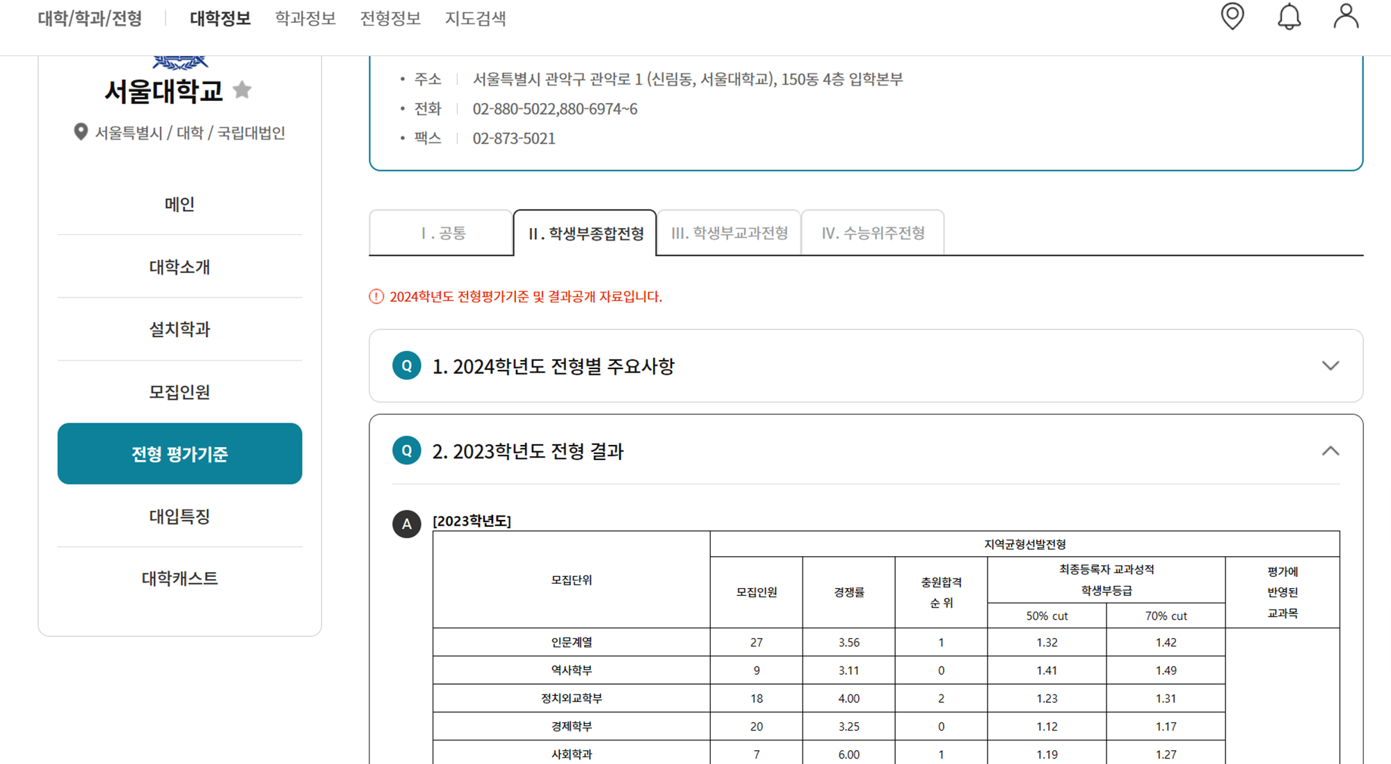 - 대학/학과/ 전형 정보
