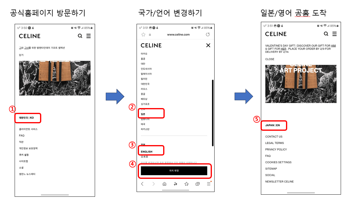 일본 셀린느 공식 홈페이지 방문하기 (일본어/영어)_모바일 기준