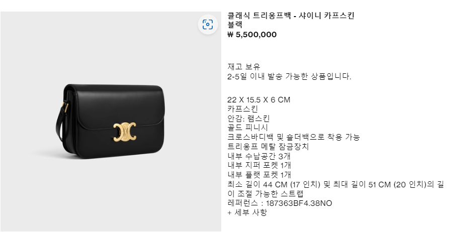 일본 셀린느 공식 홈페이지 재고 조회 바로가기