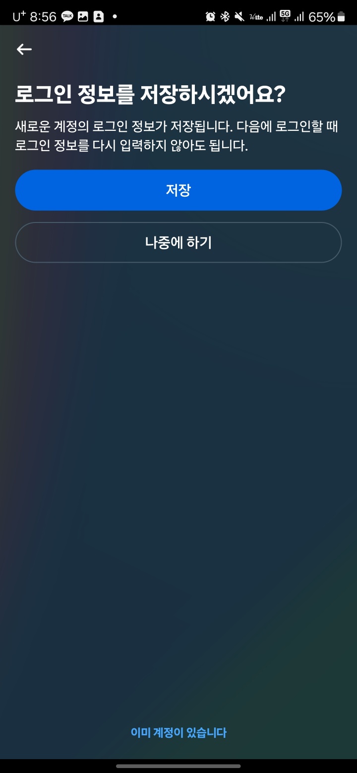 5. 로그인 정보를 저장하시겠어요? 라고 하면 저장 또는 나중에 하기를 고릅니다.