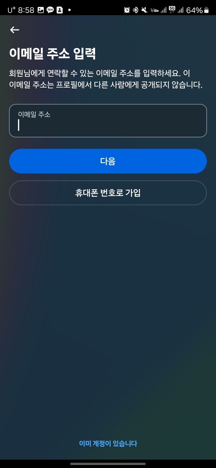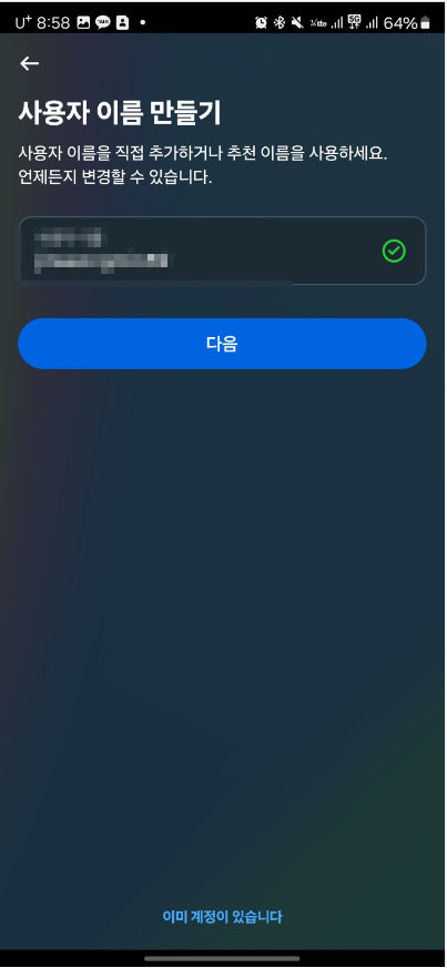 1. 어플을 실행하고 하단에 새계정 만들기를 누릅니다.
