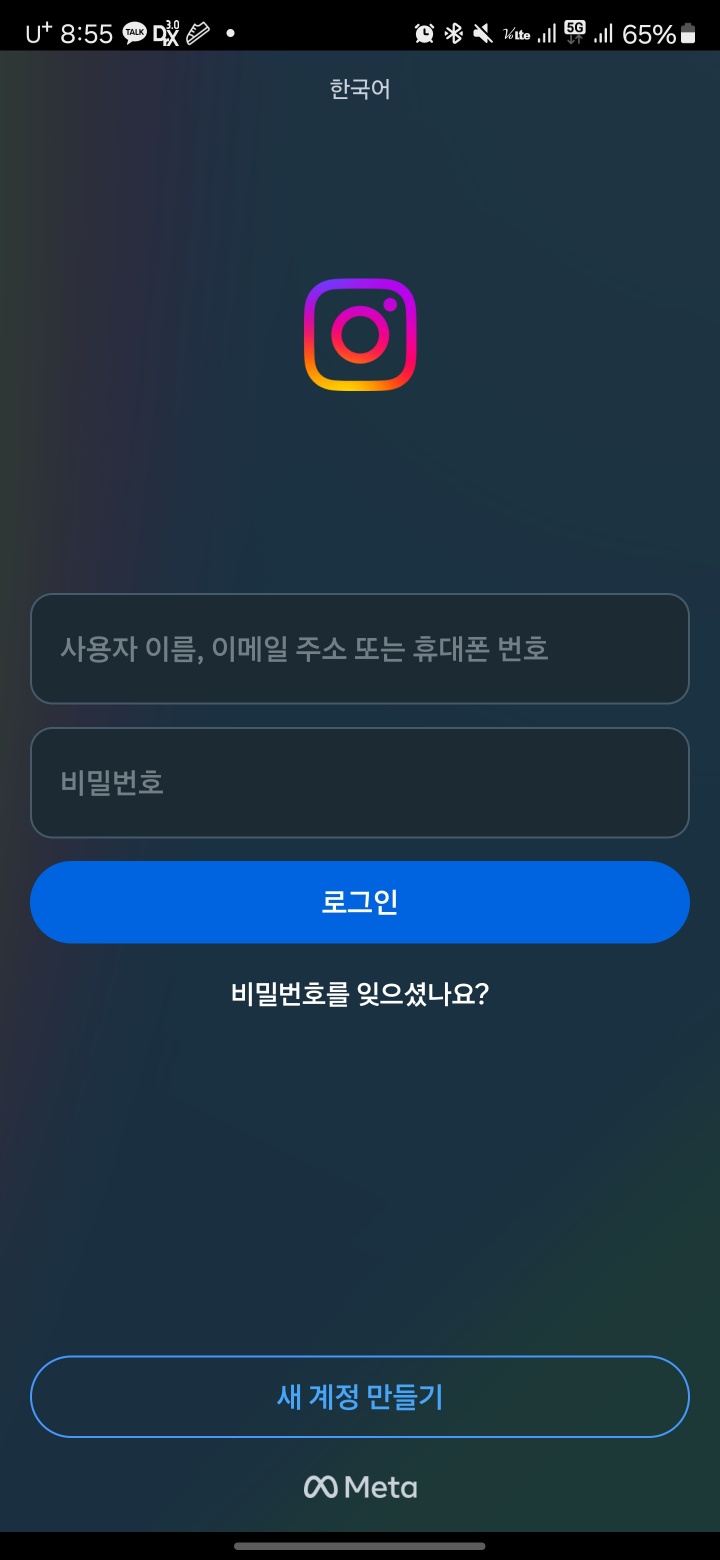 인스타그램 어플을 깔았다면 바로 계정을 만들겠습니다.