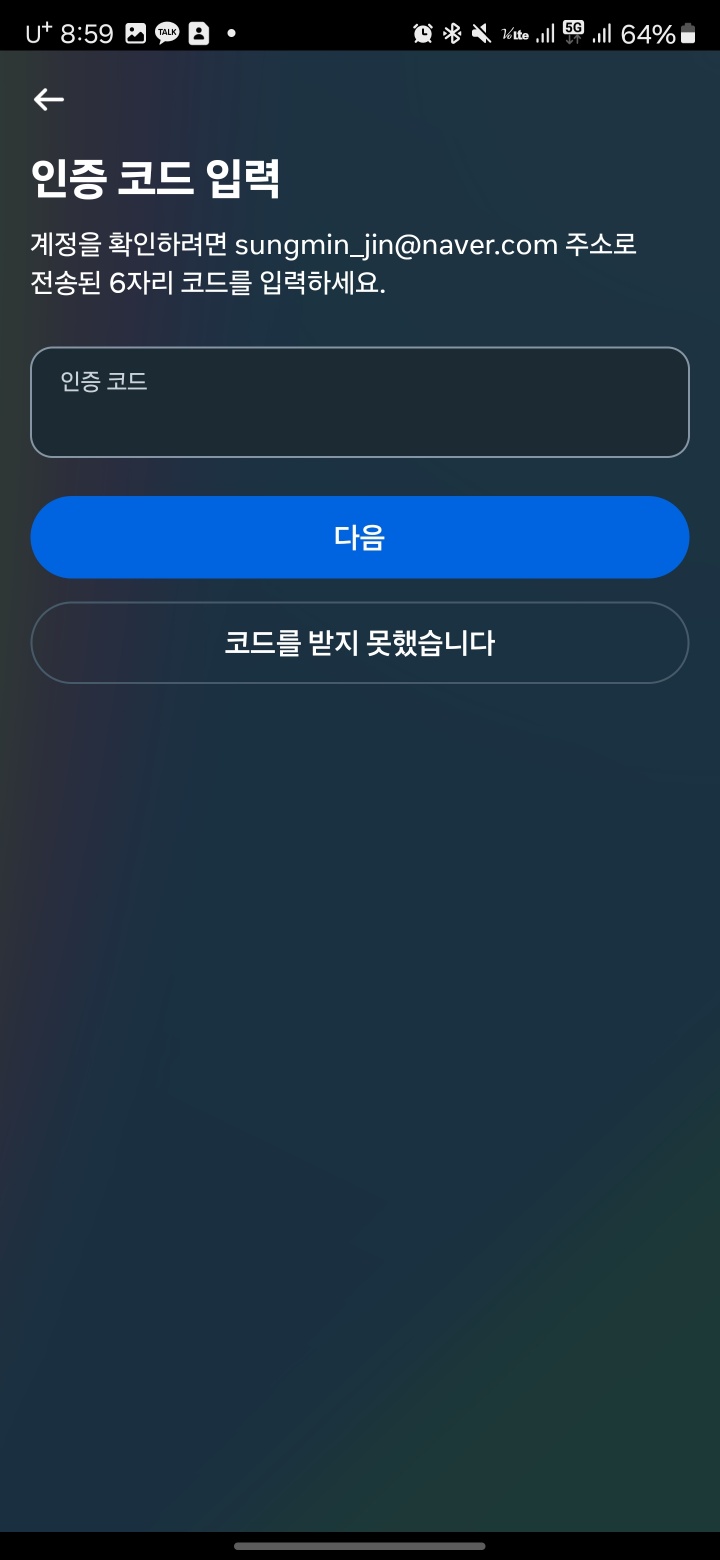 4. 이메일주소로 전송된 인증코드를 입력합니다.