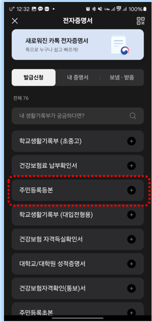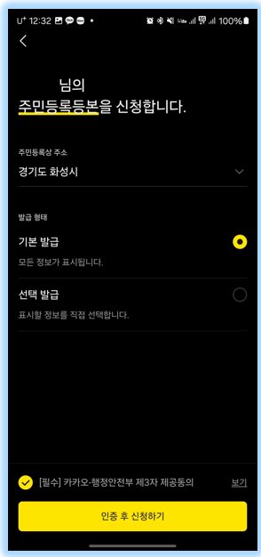 대부분의 국민들이 많이 사용하는 카카오톡을 통해서도 주민등록등본을 발급받으실 수 있습니다.