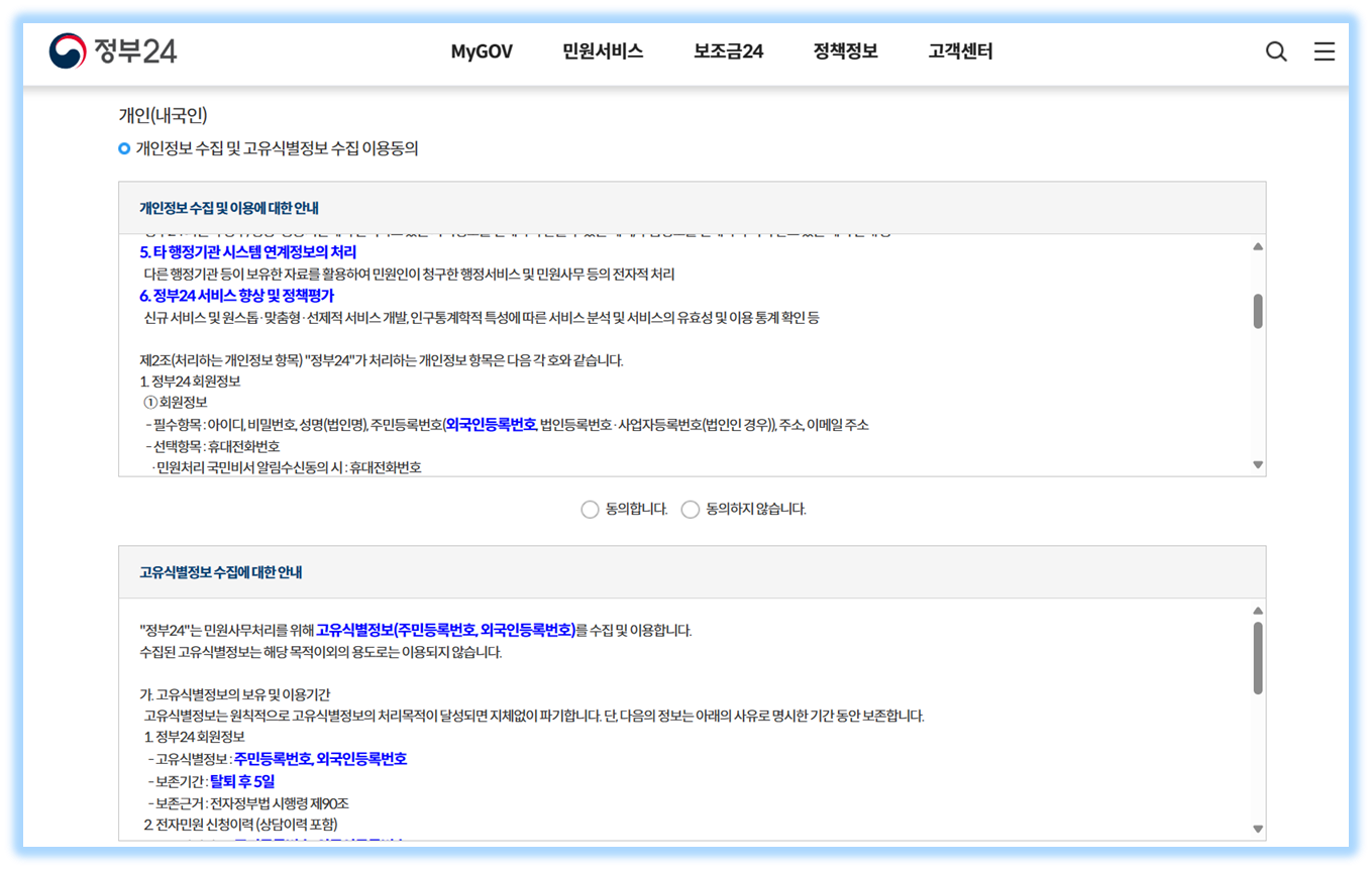 - 주민등록이 되어 있어야 하므로 내국인만 가능함