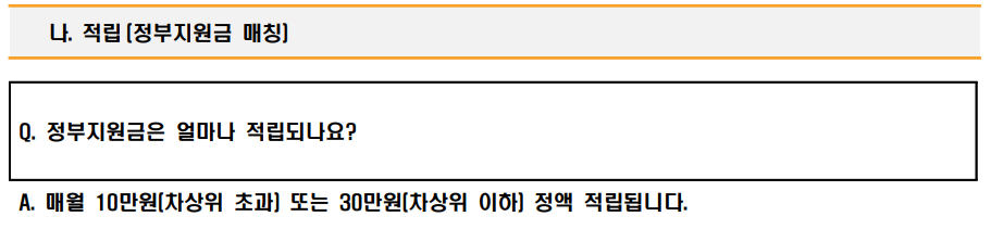 - 차상위 이하 : 매월 30만원 매칭